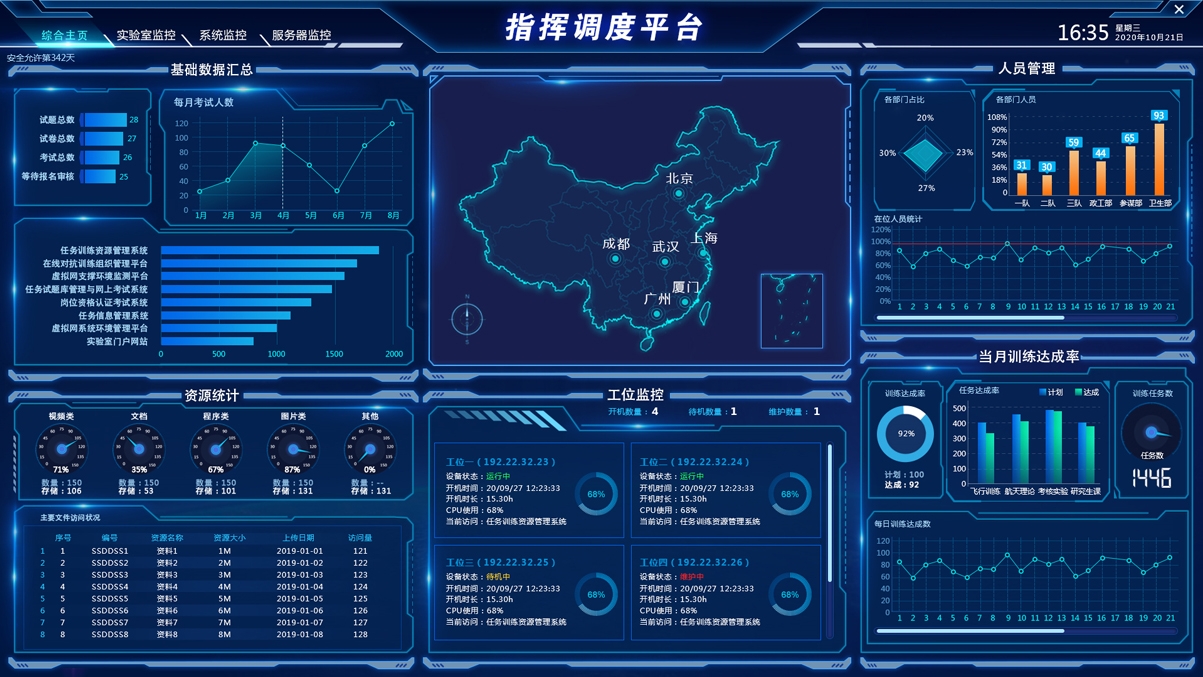 包括訓練計劃、訓練檢查、訓練考核、訓練檔案、訓練資源模塊,實現對訓練計劃制定情況自動統計和智能分析、逐步解決訓練時間、訓練人員落實情況、實現智能報靶和體能訓練監測、實現網上模擬訓練與考核的智能化、自動化和便捷化,對訓練資源科學管理,確保為軍事訓練工作有力支撐。